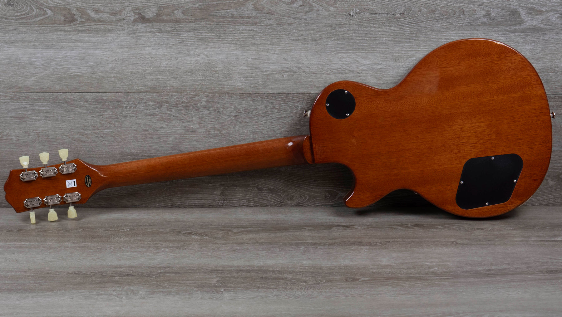 Les’ first solidbody guitar, nicknamed “the Log,” would go on to inspire the Les Paul Standard, which many consider the greatest electric guitar ever made. This guitar is crafted with a mahogany body with a maple cap, a bound ’59 Rounded Medium C-shaped mahogany neck with long neck tenon, laurel fretboard with classic trapezoid inlays and 22 medium jumbo frets, Epiphone’s Vintage Deluxe tuners, a pair of critically acclaimed Epiphone Probucker™ humbuckers™, and gold Top Hat knobs with dial pointers.