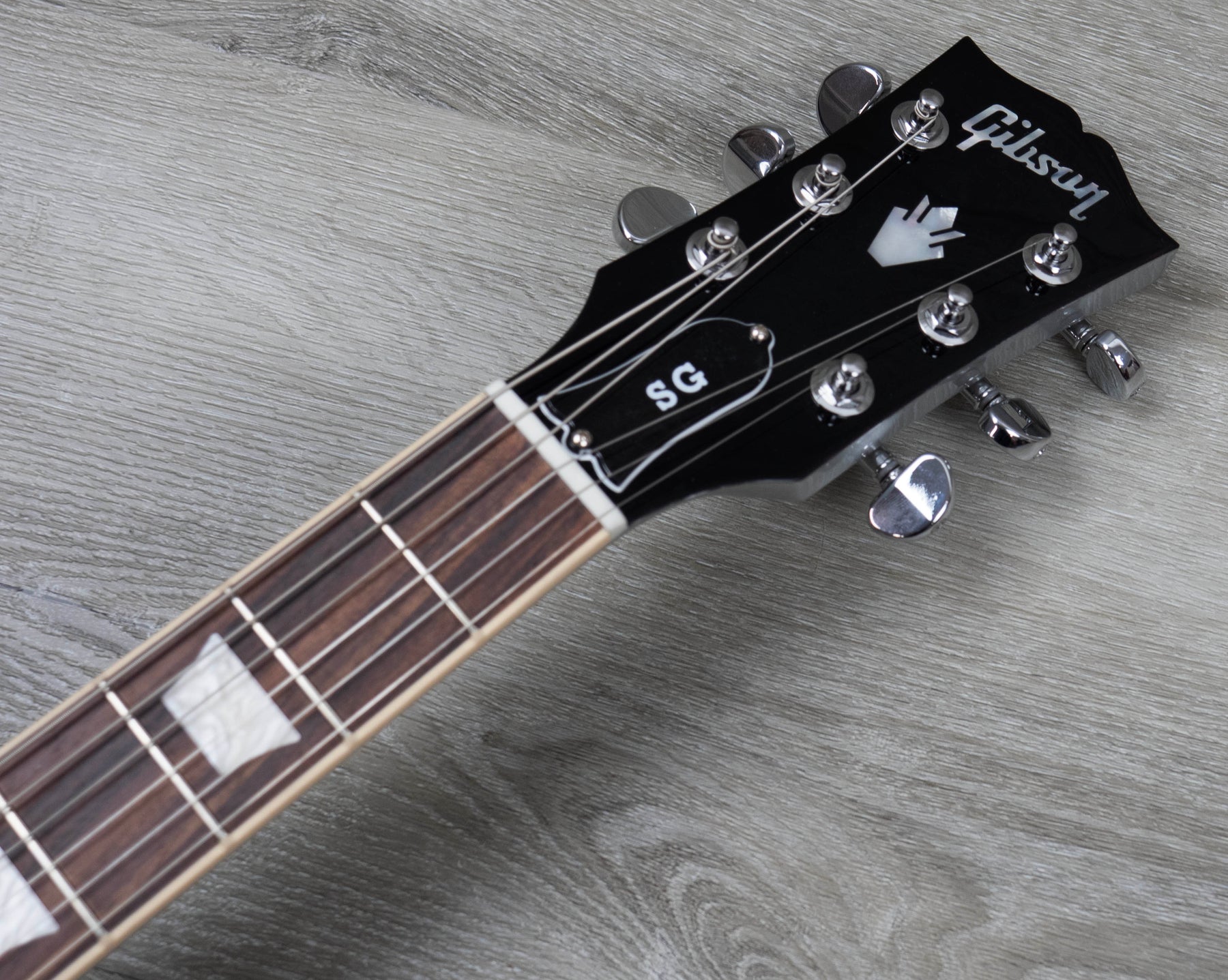 The Gibson SG Standard is an emblem of style, performance, and durability. Boasting the classic 60s SG™ design, it offers not just an instrument, but a vintage vibe that's highly sought after by music aficionados. This model, part of the Custom Colour Series, brings an added flair to your stage or guitar collection.