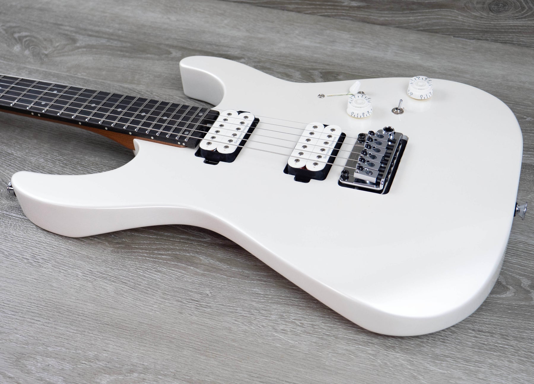 This axe features an HH pickup configuration consisting of a direct mount Seymour Duncan Full Shred TB-10 bridge pickup and direct mount Seymour Duncan Alnico Pro II APH-1N neck pickup. The bridge pickup radiates a crisp top-end with low-end articulation, while the neck pickup has incredible range with soaring highs and silky lows.