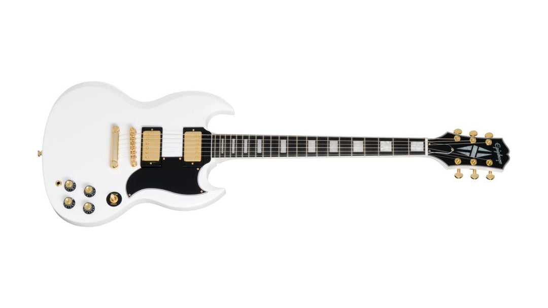 Epiphone Inspired by Gibson 1963 Les Paul SG Custom with Maestro Vibrola, Classic White, with Hard Case