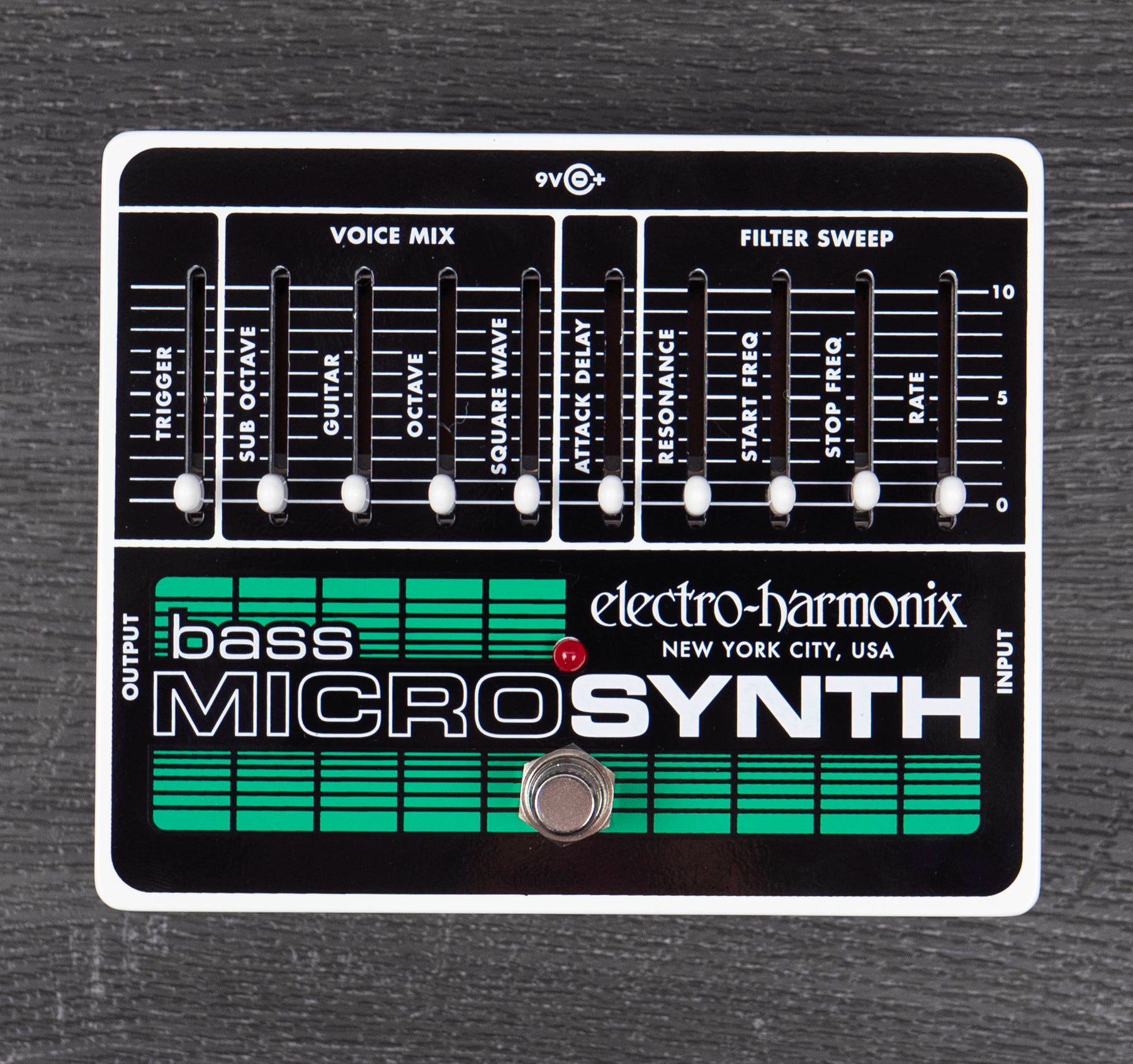 Its voice mix section lets you bring in 4 different voices: Sub Octave, Guitar, Octave, and Square Wave. The Square Wave gives the Bass Micro Snythesizer its signature, fuzzy growl that calls back to the cosmic ’70s .