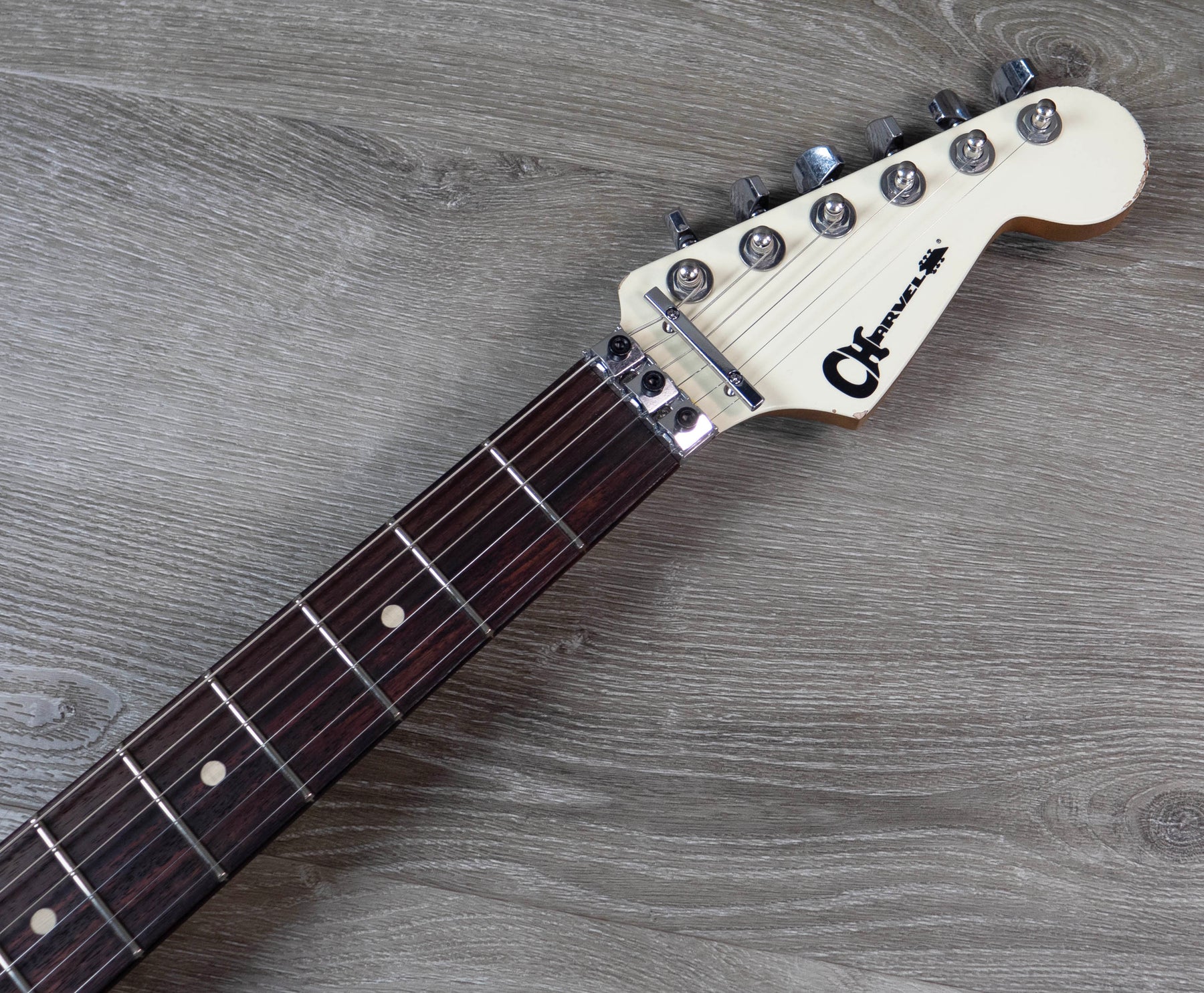 The distressed finish gives this Charvel axe the look of a road warrior that has many more glorious miles ahead of it.