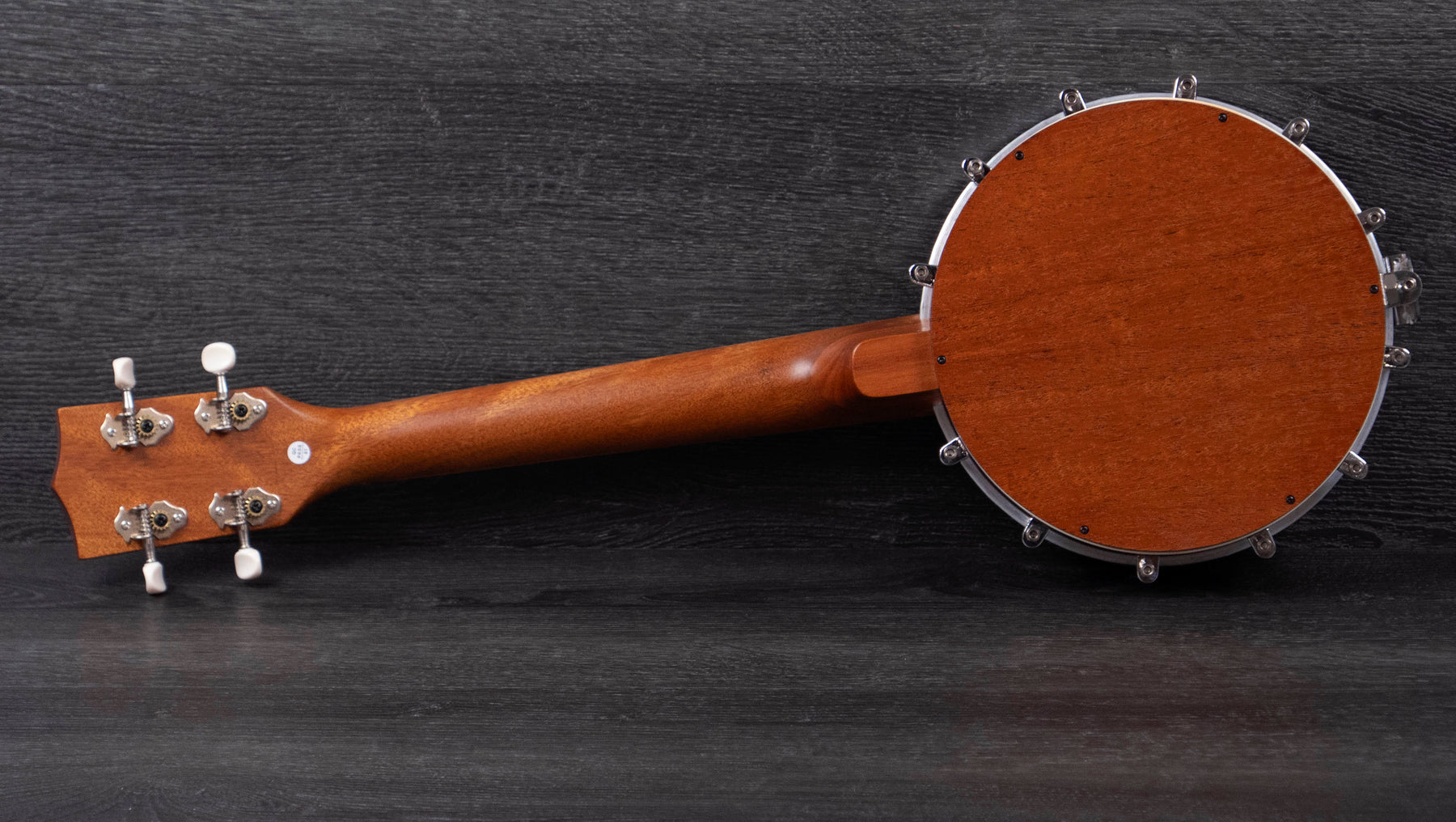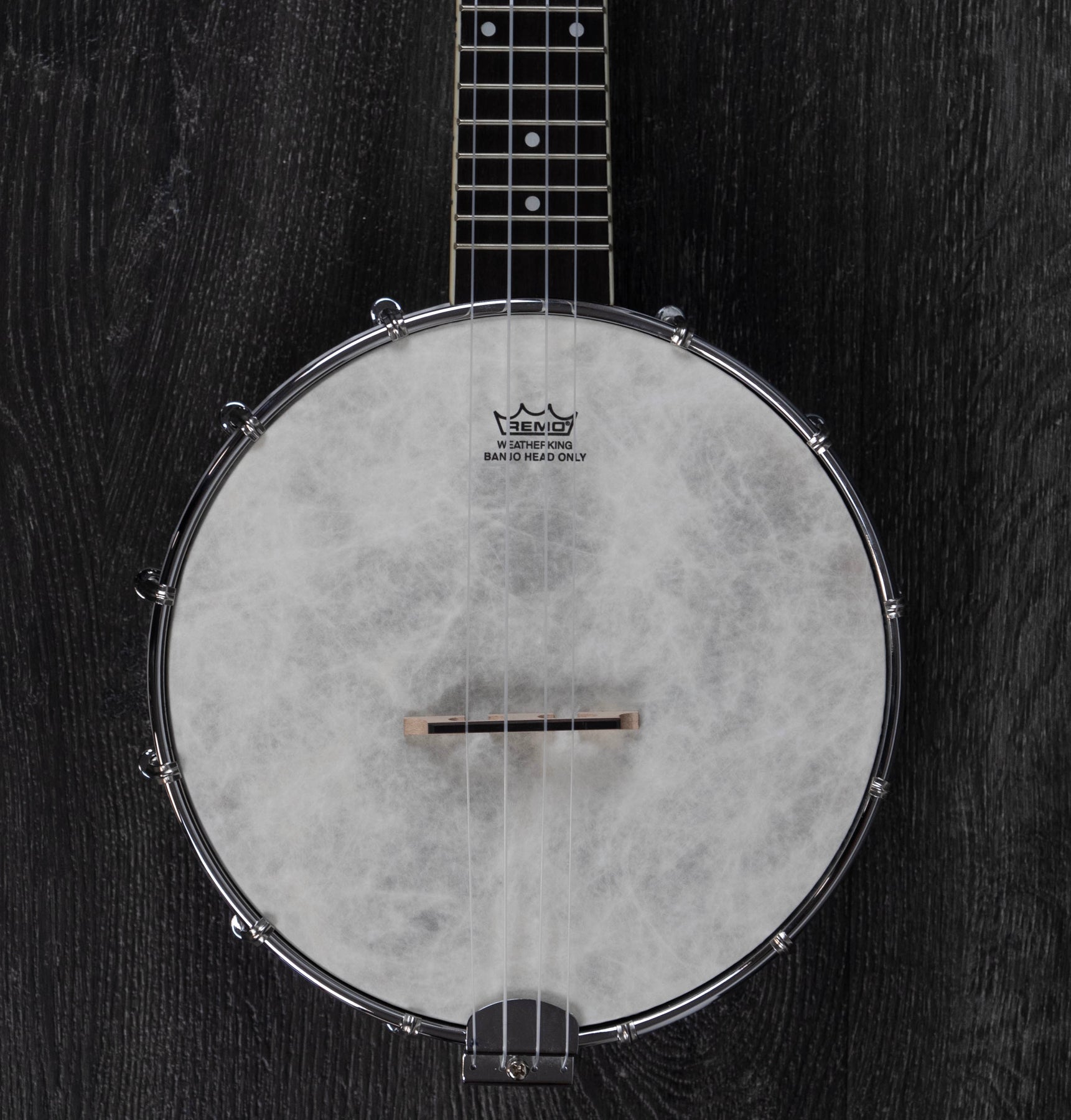The Natural Mahogany Banjo Concert Ukulele is a unique fusion of two beloved instruments. It captures the classic, rustic appeal of a banjo in the convenient size of a ukulele. Its signature, twangy tone is softened by nylon strings, creating a sound that’s both vibrant and warm. This banjolele features a Remo Weatherking® Banjo Head, a floating bridge, and beautiful natural mahogany back and sides. A custom-fit Banjolele Gig Bag is included for easy transport and protection.